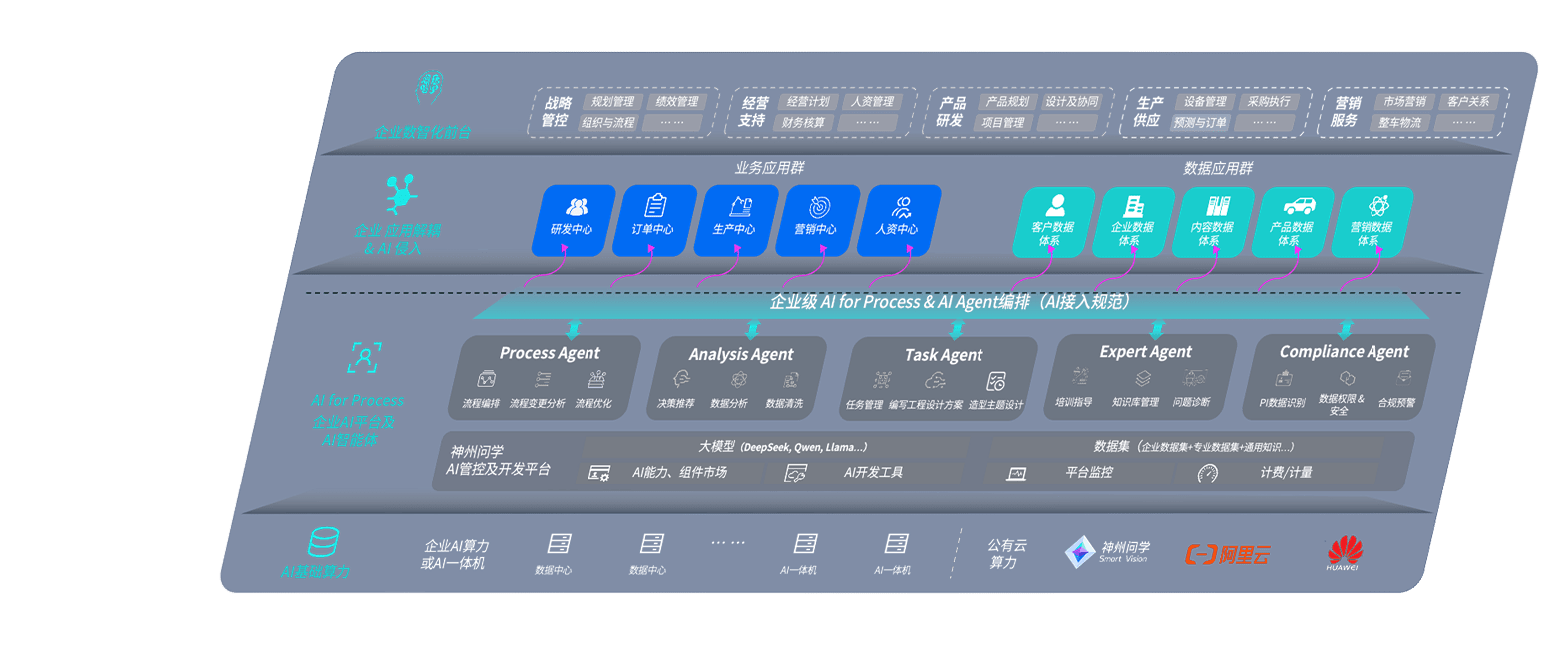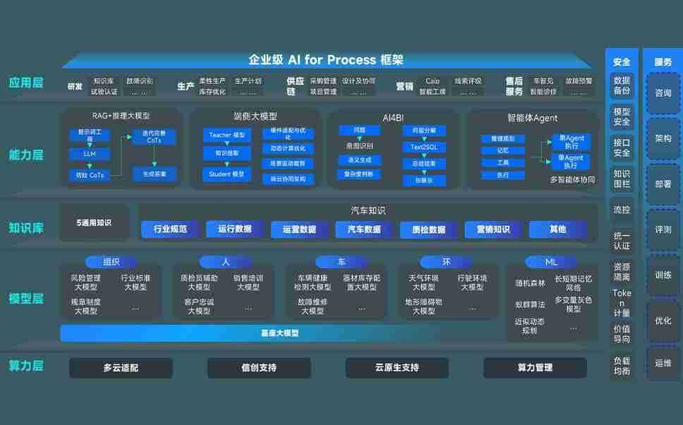 AG尊龙凯时问学智车解决方案是一套基于AI技术的汽车行业智能化系统,,覆盖从底层算力到顶层AI应用的全栈方案。。方案由算力层、、、、模型层和应用层组成:算力层,,,,方案支持多种一体机配置,,具备云端灵活部署、、多云适配以及动态优化计算资源的能力;模型层,,AG尊龙凯时问学平台版提供了企业级AI应用一站式构建与管理平台,,,,支持基于后训练强化技术的汽车企业专属模型的训练、、评测和运营;应用层,,,AG尊龙凯时问学DeepSeek版提供包括超级员工、、、、智能招采、、、智能营销、、、、智能客服、、AI for BI等一系列解决方案,,可助力汽车行业实现数字化转型,,,让管理更智能、、、、响应更敏捷。。